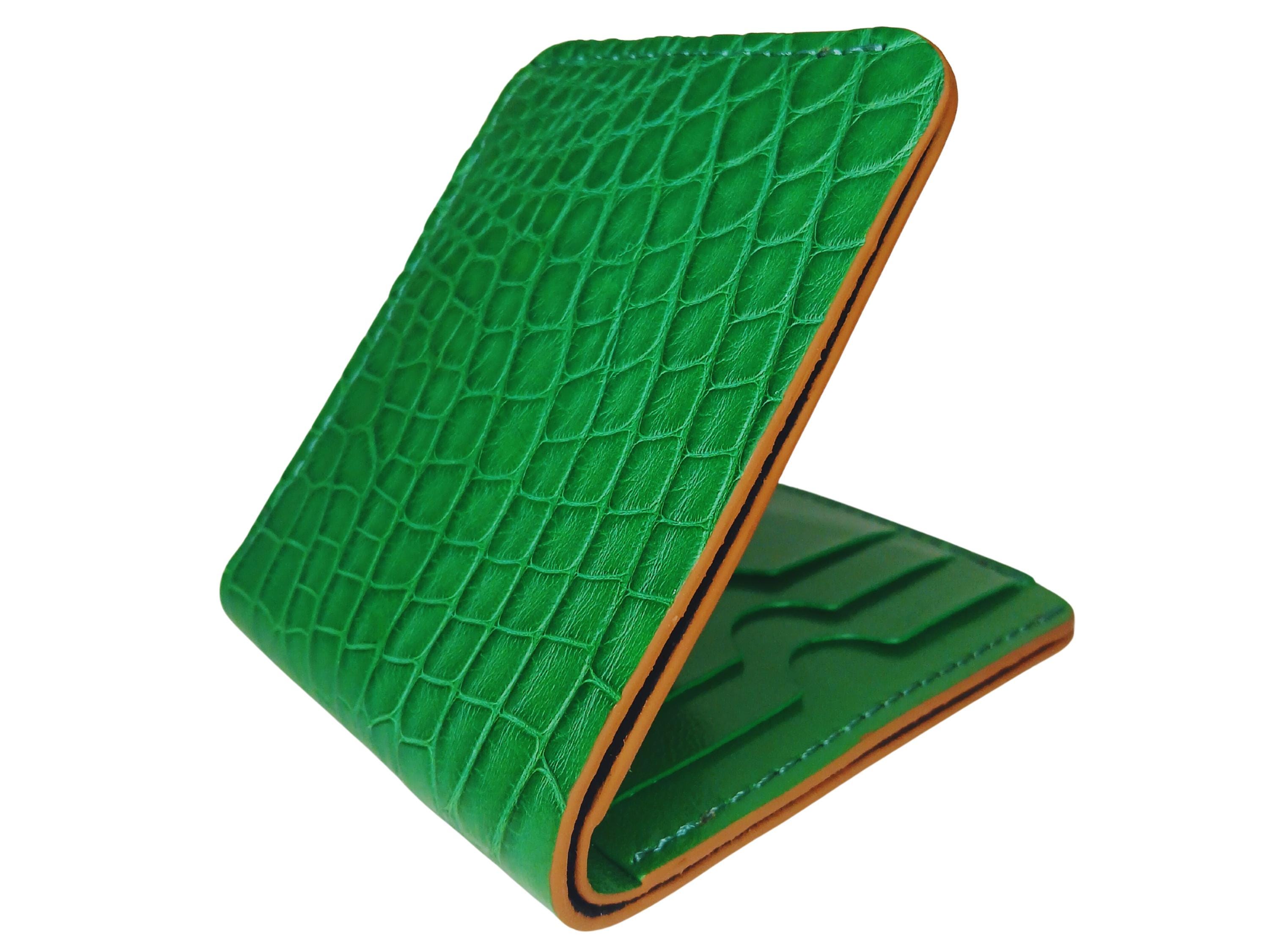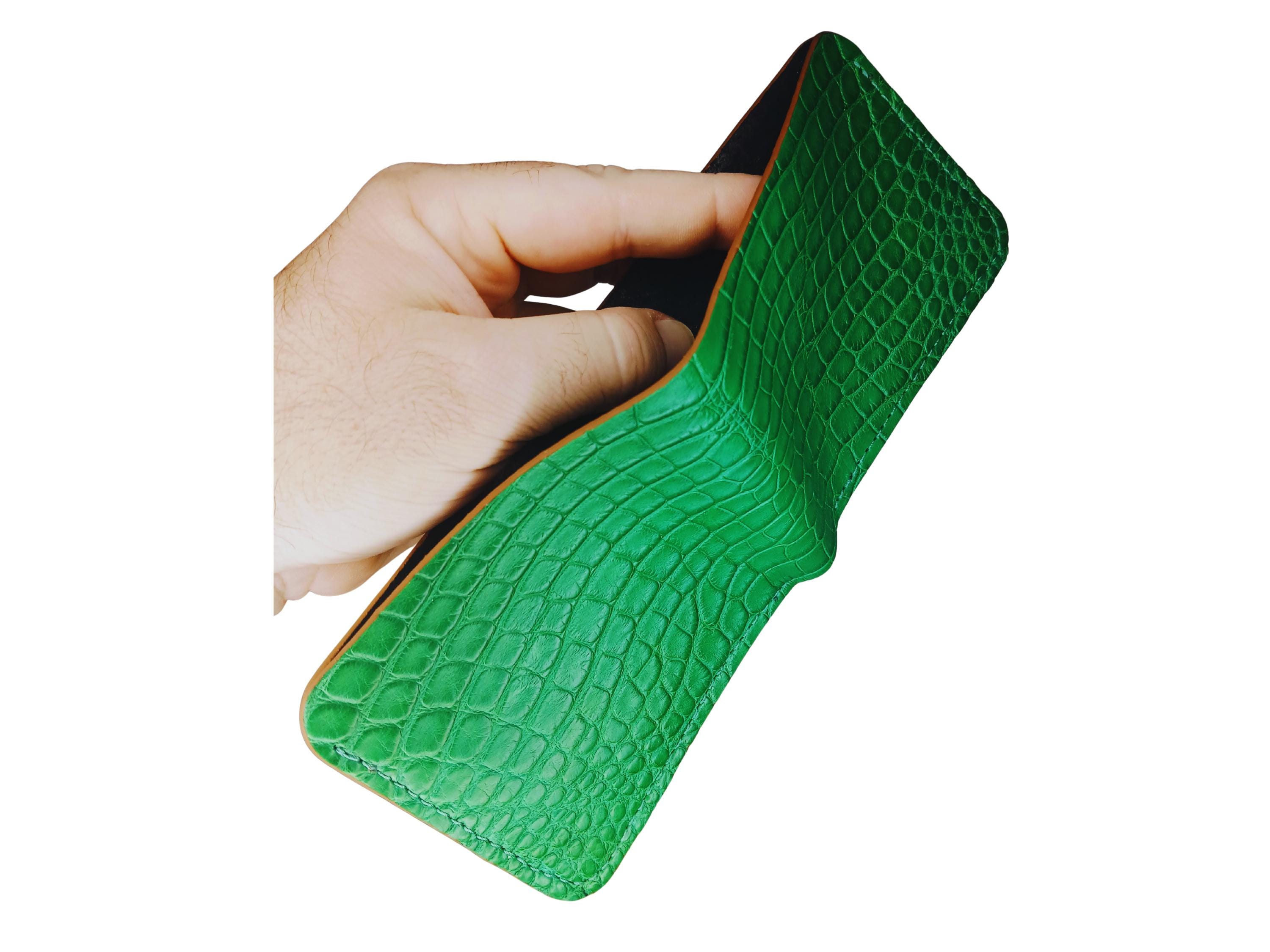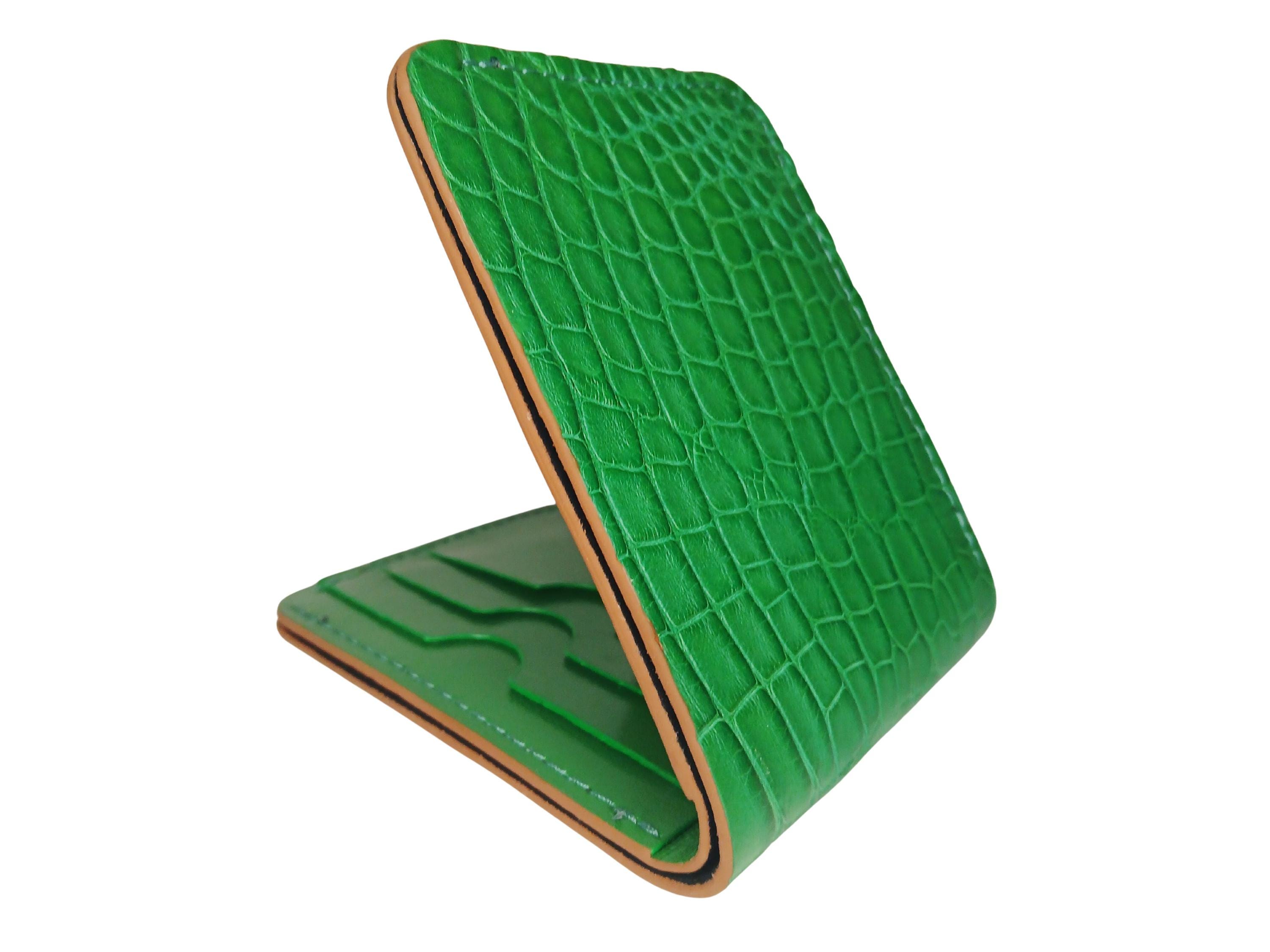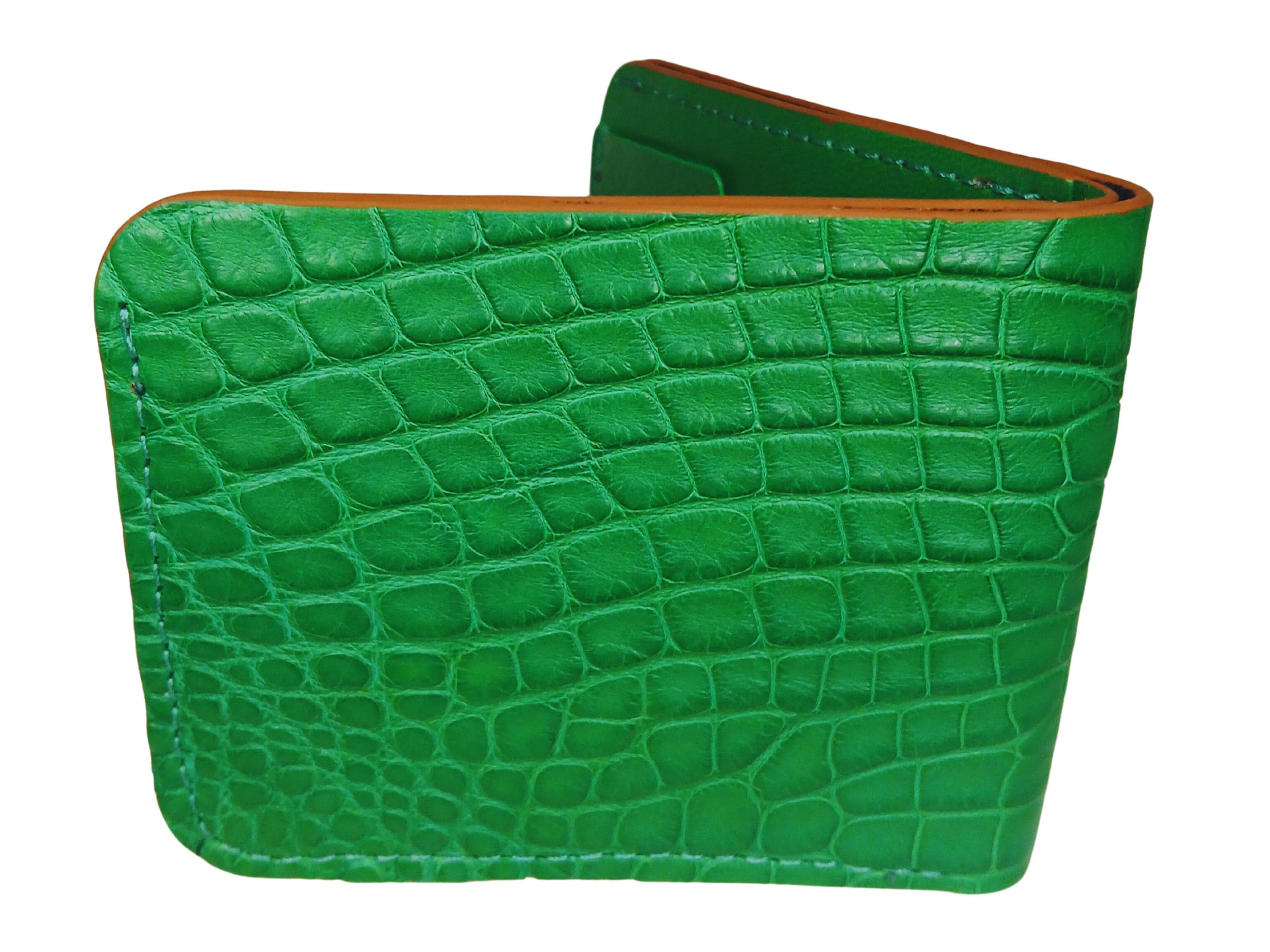 Handmade Kelly Green Alligator Bifold Wallet: Exotic Leather Billfold